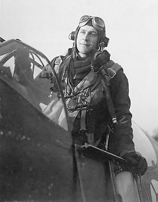 Lt. Charles F. Gumm in front of his P-51 MustangIn a cruel twist of fate, Lt. Gumm's career ended very unexpectedly on 1st March, 1944 when he made the ultimate sacrifice. The P-51 Mustang (P-51B1, 43-12165) he was flying (on a cross country flight to Goxhill) crashed shortly after becoming airborne. Its engine lost power at 800 feet. Observers of the crash, and in particular Canon W. Wright of St. James Vicarage, reported that Gumm could have parachuted to safety but chose to stay with the plane which crashed into an open field outside town. He realised he was over the Nayland village and that if he bailed out to save himself his plane would crash into the English town and claim innocent lives. He therefore decided to remain with his plane to steer it away from the village and to attempt a forced landing. It crash landed on the banks of the river Stour near 'Court Knoll' but, unfortunately, at the last moment his Mustang hit a tree and he was thrown out of the cockpit and died instantly.